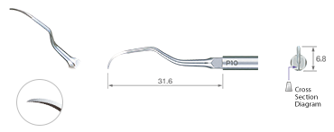Špice s ostrým okrajem. Pro snadný přístup do chobotů. Určena pro ošetřování ve všech oblastech ústní dutiny, je velice účinná při odstraňování tvrdého zubního kamene.