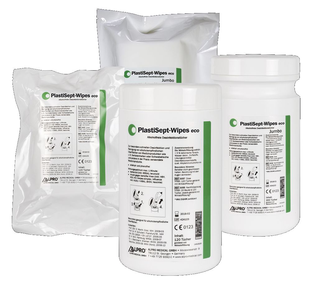 Speciální vlhčené ubrousky bez alkoholu, aldehydů a QAC obzvláště vhodné pro citlivé povrchy zdravotnických zařízení citlivé na alkohol, plastové přístroje, plexiskla, plastové konstrukce stomatologických souprav, polstrování, opěrky hlavy, závěsné stolky, plastové části RTG přístrojů (např. opěrky brady na OPG), také povrchy nástrojů (např. turbínek, kolénkových násadců, ultrazvukových scalerů atd.)